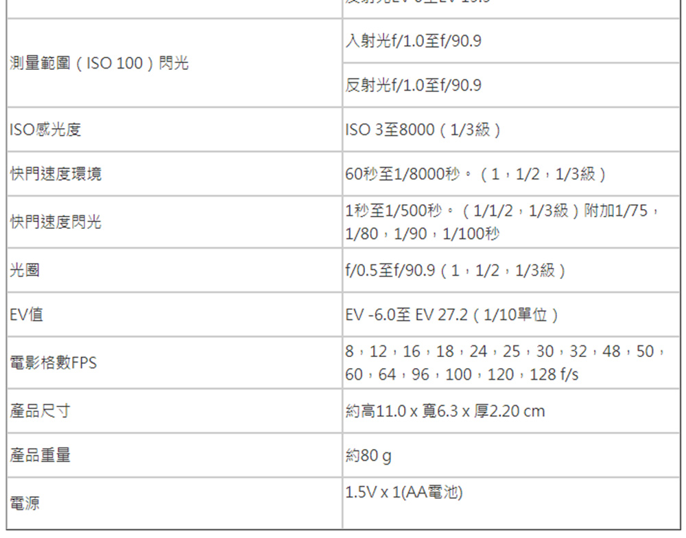 *與照度單位(lx或fc),來因應您的相機和測光要求