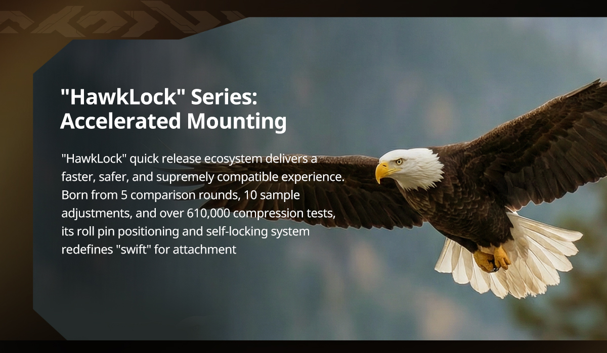 此外,底部快拆板搭配 「HawkLock」H38 Arca-Swiss 快拆座(ID 4486),可實現滑入式快速安裝並具備自動鎖定機制。底座同時內建磁吸式內六角扳手,方便組裝與拆卸。